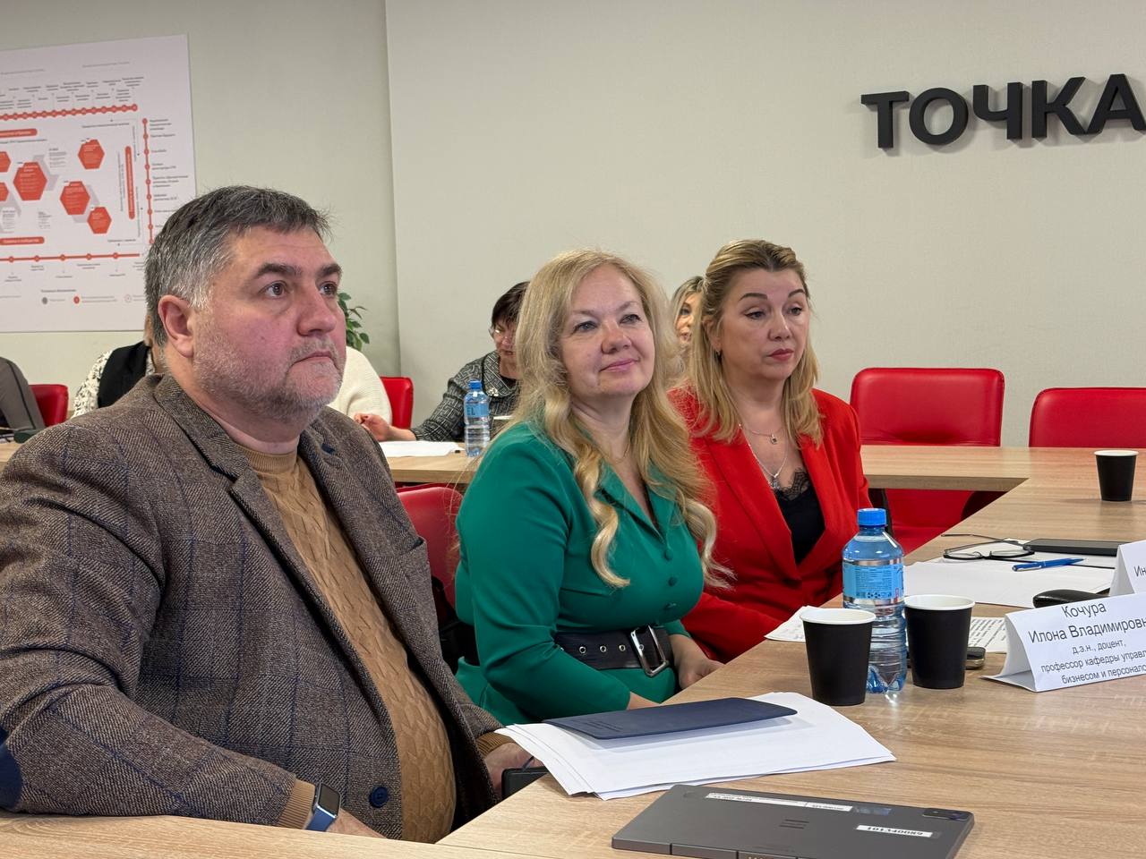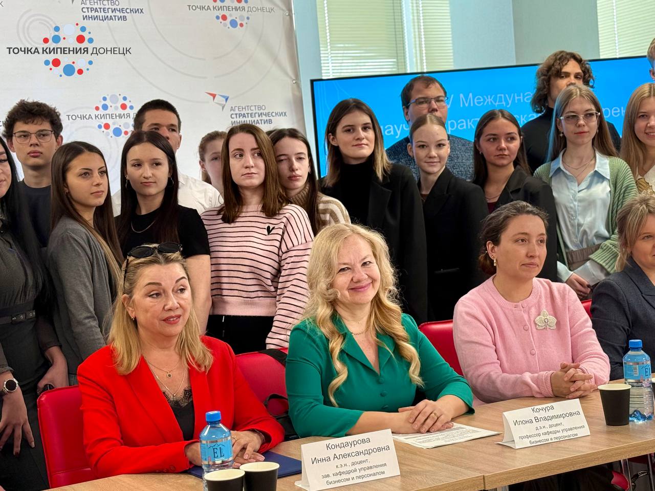 Слева направо: Кондаурова Инна Александровна, к.э.н., зав. кафедрой «Управление бизнесом и персоналом», ДонНТУ; Жильченкова Виктория Витальевна, к.э.н., декан факультета экономики и менеджмента, ДонНТУ; Севрюкова Светлана Валерьевна, к.э.н., ст.преподаватель кафедры управления персоналом и экономики труда ДонНУ